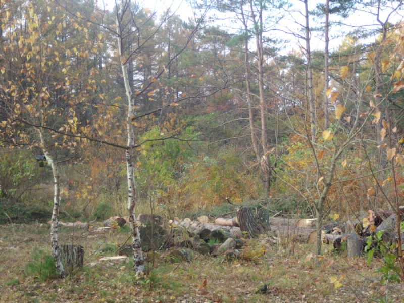 西側は赤松林だったけど、台風で倒れるので伐採したところです。白樺が少し残ってる。ここにも春になったらもみじをたくさん植えて真っ赤な秋を楽しみたい!!